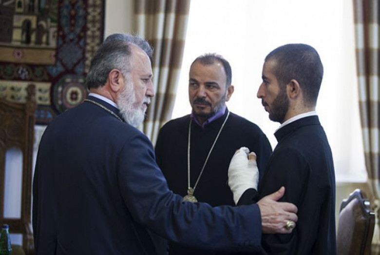 Կաթողիկոսն ընդունել է թշնամու գնդակից վիրավորված սարկավագին