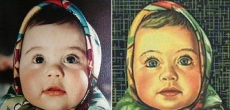 Փոքրիկ Ելենայի աչքերը շագանակագույն էին,և դեմքի օվալն ուրիշ ձև ուներ:Լուսանկարի վերջնական տեսքի հեղինակը նկարիչ Մասլովն է:
