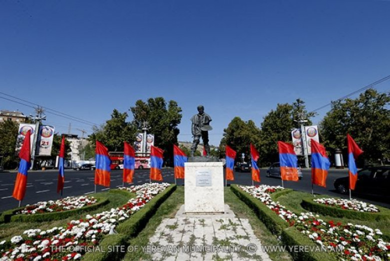 ՀասարակությունՀայաստանի Հանրապետության անկախության 24-րդ տարեդարձին ընդառաջ՝ մայրաքաղաքի բոլոր վարչական շրջանների կենտրոնական հրապարակներում, փողոցներում, այգիներում և մարդաշատ այլ վայրերում ընթանում են տոնական դրոշակազարդարման աշխատանքները: Ինչպես Արմենպրեսին տեղեկացրին Երևանի քաղաքապետարանի տեղեկատվության և հասարակայնության հետ կապերի վարչությունից, սեպտեմբերի 21-ին՝ Անկախության օրը, մայրաքաղաքն արդեն իսկ զարդարված կլինի ավելի քան 1000 դրոշներով և տոնին համահունչ զարդարանքի այլ միջոցներով: