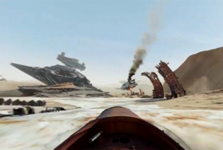 Տեսահոլովակը ցուցադրում Է հատված թողարկման պատրաստվող «Աստղային պատերազմներ». Ուժի զարթոնքը» ֆիլմից՝ Disney եւ Lucasfilm ընկերությունների ստեղծած տիեզերական սագայի յոթերորդ մասից: Հանդիսականը կարող Է ցանկացած ուղղությամբ իրադարձություններին հետեւել անապատային լանդշաֆտով սլացող փոխադրամիջոցի վարողի տեղից: