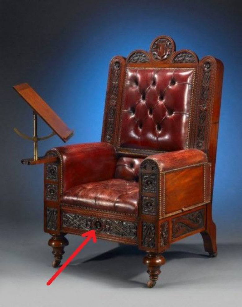 Առաջին հայացքից թվում է, թե սա սովորական բազկաթոռ էր։ Այն պատրաստված է 19–րդ դարի վերջերին և պատկանում էր հարուստ ջենթլմեններից մեկին։ Ծերունին գրեթե անբաժան էր իր սիրելի աթոռից, և միայն նրա մահից հետո թոռը պատահմամբ բացահայտեց դրա գաղտնիքը։ Դրանք մի քանիսն էին` թաքցված գաղտնի դարակներում։