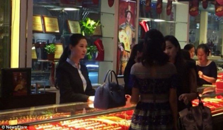 Չինուհին թղթադրամների կապոցներ է նետել ոսկերչական խանութի վաճառողի դեմքին՝ իրեն «աղքատի տեղ դնելու համար» (նկարներ)