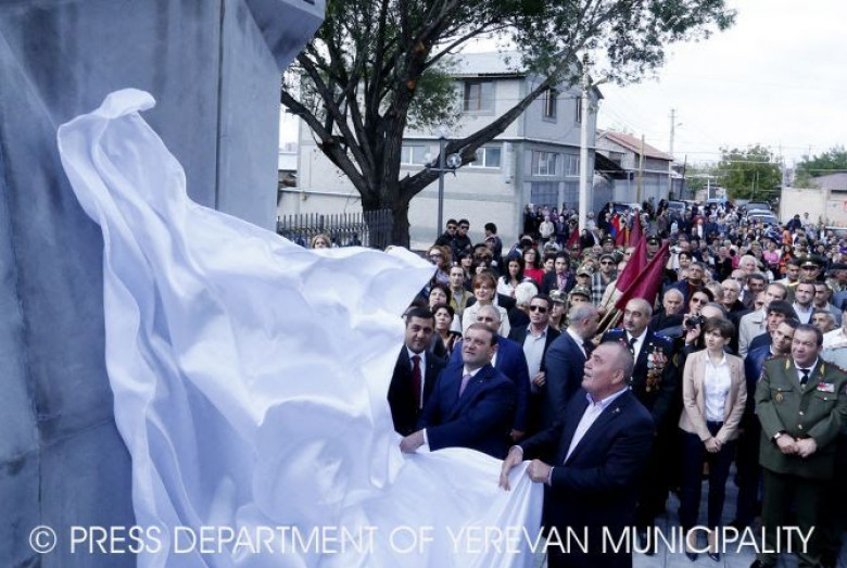 Ինչպես տեղեկացրին Երևանի քաղաքապետարանի տեղեկատվության և հասարակայնության հետ կապերի վարչությունից, կոթողը տեղադրվել է վարչական շրջանում գտնվող Հայրենական մեծ պատերազմի զոհերի հիշատակը հավերժացնող հուշարձանի հարևանությամբ, որի հարակից 520 քմ զբաղեցնող տարածքը, Երևանի քաղաքապետարանի տարեկան ծրագրով, ամբողջությամբ բարեկարգվել ու հարմարեցվել է նաև որպես հանգստի գոտի: Հուշարձանի բացման պատիվը վերապահվել է Երևանի քաղաքապետ Տարոն Մարգարյանին, ԵԿՄ վարչության նախագահ Մանվել Գրիգորյանին և Դավթաշեն վարչական շրջանի ղեկավար Ռուսլան Բաղդասարյանին: Ներկաներին ուղղված ողջույնի իր խոսքում քաղաքապետ Տարոն Մարգարյանը նկատել է, որ մատաղ սերնդի մեջ նաև նմանատիպ տ արածքների յուրովի արժևորման տեսքով պետք է հայրենասիրություն սերմանվի: