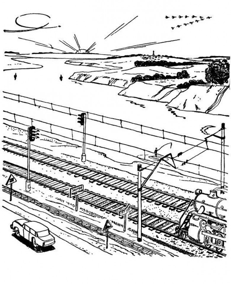 12.  Երկաթգծի կողքին դրված նշանը ցույց է տալիս, որ հանդիպակաց գնացքը պետք է բարձրանա թեքությամբ դեպի վեր։ Արգելակելը դժվար չի լինի։