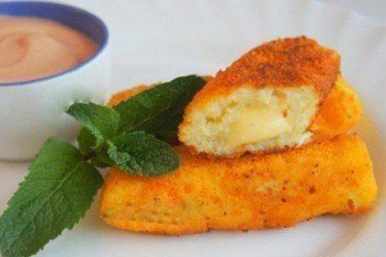 - Թաց ձեռքերով կարտոֆիլային խյուսից պատրաստում ենք ձողիկներ, մեջտեղը դնում մեկական պանրի կտոր ու թաթախում պաքսիմատի մեջ: Ստացված ձողիկները տապակում ենք բոլոր կողմերից ձիթայուղի մեջ մինչև պաքսիմատի ոսկեգույն դառնալը: