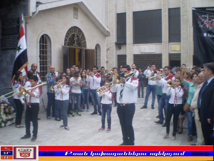 Առավոտյան Դամասկոսում՝ ուժեղ անվտանգության միջոցառումներով, Սուրբ Սարգիս եկեղեցում Արմաշ արքեպիսկոպոս Նալբանդյանի ղեկավարությամբ անցկացվել է պատարագ, որին հետևել է Հայ Մարմնամարզական Միության տողանցքը Դամասկոսի փողոցներով: Երեկոյան կայացել է ժողովրդային հավաքը»,-ասվում է հաղորդագրությունում։