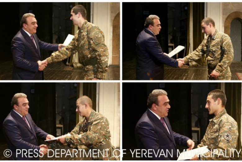 Ինչպես տեղեկացրին Երևանի քաղաքապետարանի տեղեկատվության և հասարակայնության հետ կապերի վարչությունից, Պատանի հանդիսատեսի թատրոնում զինվորների և նրանց ծնողների համար կազմակերպված հանդիսավոր արարողության շրջանակում Երևանի քաղաքապետ Տարոն Մարգարյանի անունից ողջունելով ներկաներին` քաղաքապետի տեղակալ Դավիթ Օհանյանը նկատել է, որ Երևանի քաղաքապետարանի ու ՀՀ պաշտպանության նախարարության միջև ձևավորված արդյունավետ համագործակցությունը հնարավորություն է ընձեռում նախաձեռնել սոցիալական նշանակության տարբեր ծրագրեր՝ պարբերաբար ապահովելով երևանաբնակ զինծառայողների ու նրանց ծնողների հանդիպումը: