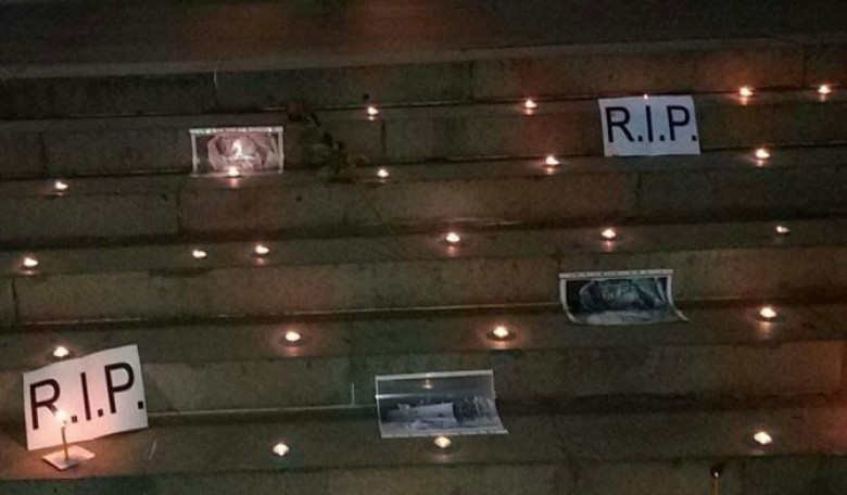 Ազատության հրապարակը լուսավորվել էր ավտոբուսի վթարի զոհերի հիշատակի համար վառված մոմերով