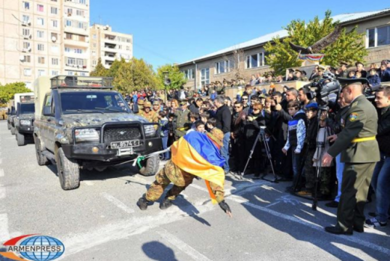 ՀասարակությունՀետախույզի օրն ըմբշամարտիկ, ժամկետային զինծառայող Յուրա Սաքունցը յուրահատուկ կերպով է նշում: Գինեսի միանգամից երկու ռեկորդ, որ նվիրում է Հայոց բանակին եւ հատկապես հետախույզներին: Քանաքեռում տեղակայված զորամասերից մեկում տոնական միջոցառման ժամանակ Սաքունցը նախ ատամներով տեղից պոկեց 3 տոննա քաշով մեքենան, այնուհետեւ ճկույթով տեղից շարժեց 3 տոննա քաշով 4 մեքենաները: «Արմենպրես»-ի հետ զրույցում Սաքունցը շեշտում է` մոտավորապես կես տարի պարապել էր այս հաղթանակի եւ արդյունքի համար: 7 անգամ դյուցազնագրքում ընդգրկված Սաքունցը խոստովանում է, որ իր համար հաղթանակը կարեւոր է նաեւ այն առումով, որ մինչ այդ, ոլորտում ռեկորդը սահմանել էր ադրբեջանցի մարզիկը` տեղից պոկելով 2 տոննա քաշով մեքենան: