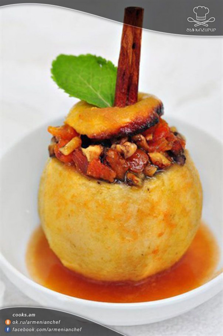 Մատուցելիս լցոնված խնձորի վրա դրեք անանուխի տերև՝ դեսերտին գեղեցիկ տեսք հաղորդելու համար: