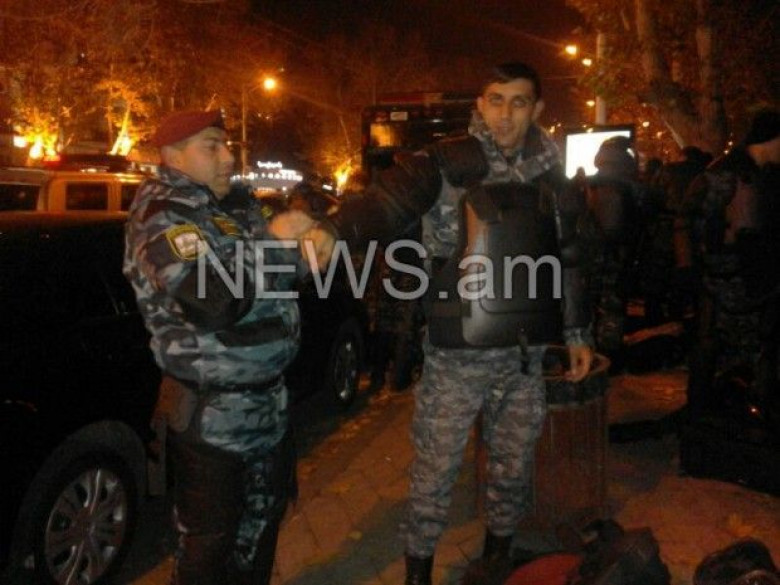 NEWS.am-ի թղթակիցը հաղորդում է, որ մի քանի տասնյակ կարմիրբերետավորներ զինվում են հատուկ միջոցներով, մահակներով, բաճկոններով, սաղավարտներով եւ վահաններով: