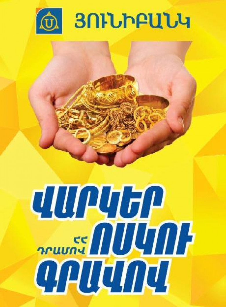 ՏնտեսությունԱյսուհետ ոսկու գրավով վարկեր կարելի է ձևակերպել Յունիբանկի ութ մասնաճյուղերում: Հաճախորդների պահանջարկի մեծացմանը զուգընթաց` Յունիբանկն ավելացրել է ոսկու գրավով վարկեր տրամադրող մասնաճյուղերի քանակը և բարելավել է վարկավորման պայմանները: