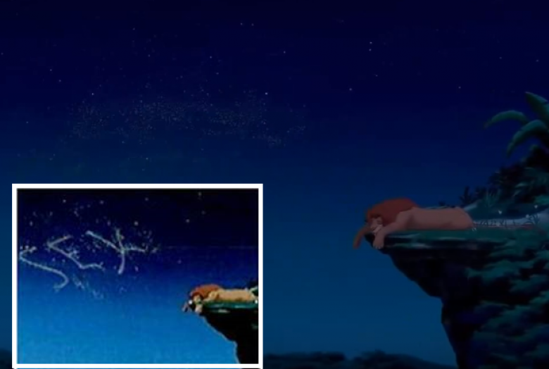 «Առյուծ արքան» մուլտֆիլմի այս կադրը հակասական է համարվում, որովհետև որոշ մարդիկ պնդում են, որ Սիմբայի գլխավերևում աստղերն այնպես են դասավորված, որ դրանք կազմում են «sex» բառը։ «Disney»-ն, արձագանքելով մարդկանց այս պնդումներին, նշել է, որ, այո՛, իրականում էլ դրանք իրենցից տառերի համակցություն են ներկյացնում, սակայն այստեղ ոչ թե «sex» է գրված, այլ «SFX», որն իրենից ներկայացնում է «հատուկ էֆֆեկտների» հապավումը։
