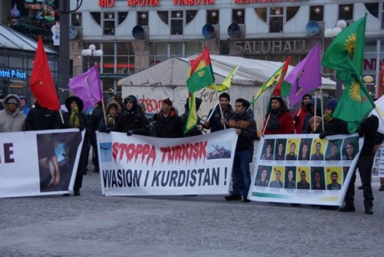 Ցույցի մասնակիցները ձեռքերում պահել են պաստառներ «Բոլորս PKK ենք», «PKK-ի վրա դրված արգելքը թող հանվի», «Մանկասպան Էրդողան» գրություններով: Ստոկհոլմում Ժողովրդավարական քրդական հասարակական կենտրոնի ղեկավար Իմրան Քարաերն իր խոսքում նշել է, որ 2015 թվականի հունիսի 7-ի խորհրդարանական ընտրություններում պարտություն կրելուց հետո Էրդողանը, դադարեցնելով թուրք-քրդական հաշտեցման գործընթացը, սկսեց քուրդ ժողովրդի նկատմամբ հարձակումներ իրականացնել: Դրա արդյունքում երկրի ներսում իրավիճակը վերադարձավ 1990-ականների իրավիճակին, և այս պահին շատ գավառներ ու քաղաքներ ամբողջությամբ թուրք զինվորականության վերահսկողության տակ, շրջափակման մեջ են: