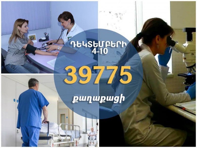 Դեկտեմբերի 4-10-ը Երևանի քաղաքապետարանի ենթակայությամբ գործող ամբուլատոր-համաբուժարանային բուժհաստատություններ է այցելել 39775 քաղաքացի