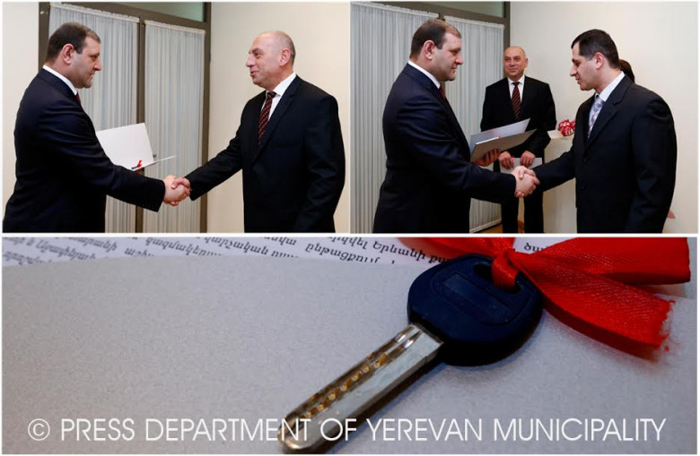 Երևանի քաղաքապետ Տարոն Մարգարյանը նոր բնակարանների բանալիներ է հանձնել Աշոտ Գալստյանին և Հարություն Շախկյանին