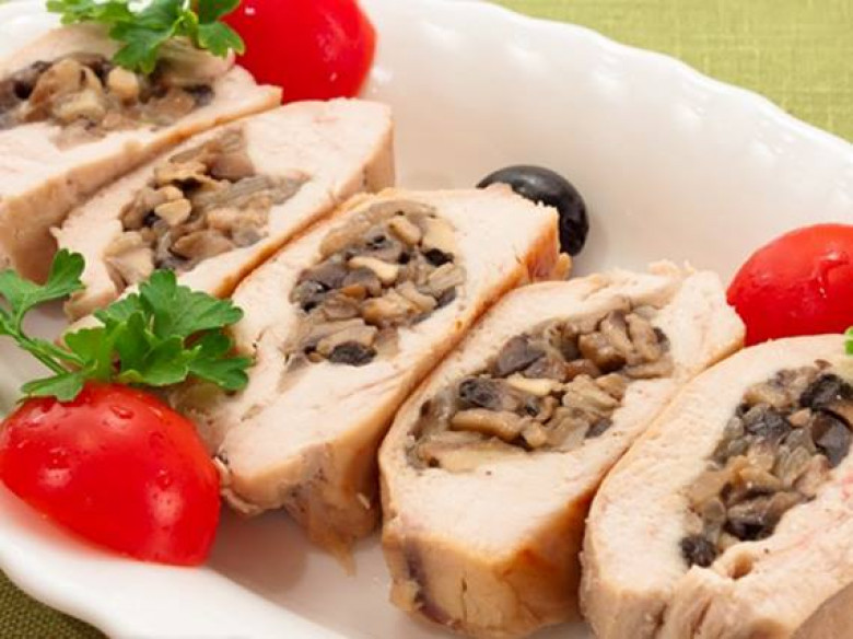 Սունկը լցոնում ենք այդ գրպանի մեջ։ Այնուհետև ֆիլեյի բաց մասը չոփիկներով ամրացնում ենք։ Ֆիլեն աղով և պղպեղով համեմում ենք ու տապակում բուսայուղի մեջ յուրաքանչյուր կողմից 10 րոպե։