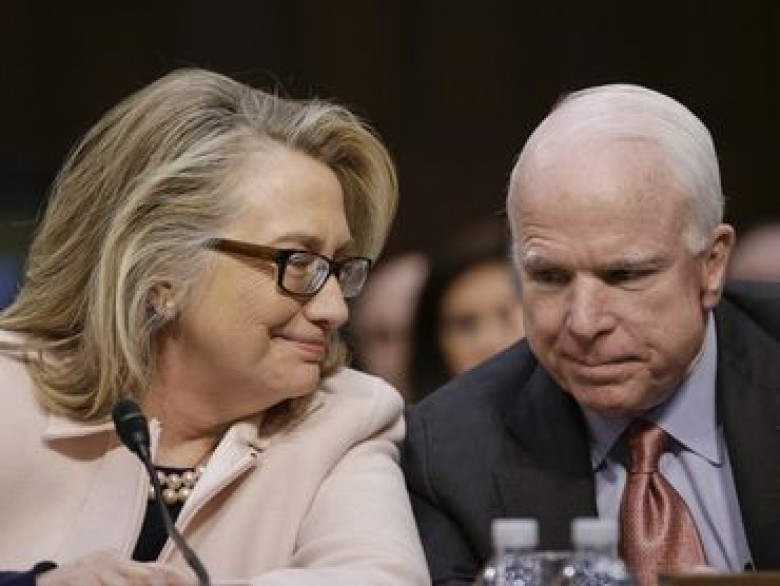 ՄիջազգայինԴեմոկրատական կուսակցությունից ԱՄՆ նախագահի թեկնածու, նախկին պետքարտուղար եւ նախկին առաջին տիկին Հիլարի Քլինթոնը պատմել է, թե ինչպես է հանրապետական սենատոր Ջոն ՄաքՔեյնի հետ գրազով օղի խմել: Քլինթոնի խոսքով, «ալկոհոլային խմիչք խմելու այդպիսի բազմաթիվ մրցակցությունների» է մասնակցել: Խոստովանությամբ հոլովակը Քլինթոնի նախըտրական արշավի Twitter-ի էջում: