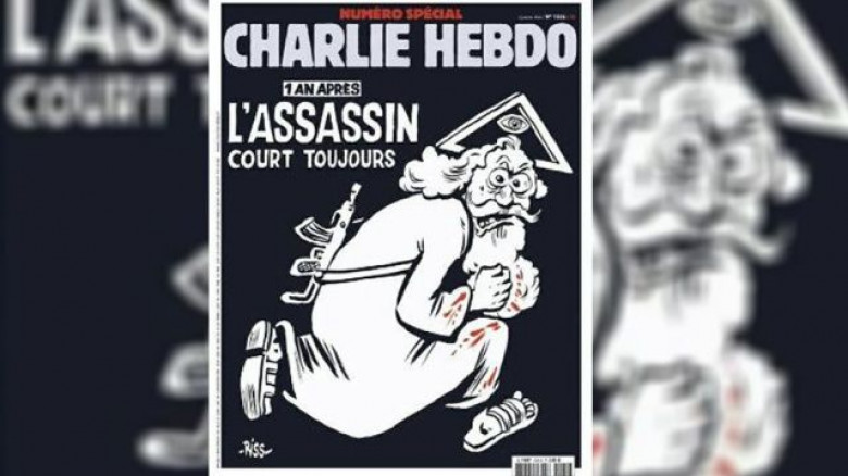Նկարի մակագրության մեջ ասվում է, որ դա անցյալ տարվա հունվարին խմբագրության վրա հարձակում գործած մարդասպանն է: Հատուկ համարը, որը լույս կտեսնի հունվարի 6-ին, նվիրված է Charlie Hebdo-ի խմբագրության ահաբեկչության տարելիցին: