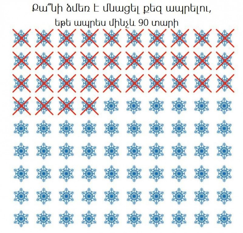Իլյուստրացիաների հեղինակը, ով 34 տարեկան է, այս պատկերով ցույց է տալիս, թե քանի ձմեռ է նա ապրել, և քանի ձմեռ է դեռևս մնացել նրան ապրելու, եթե նա ապրի մինչև 90 տարեկանը...