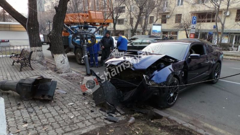 Երևանի Աբովյան փողոցում Ford Mustang-ը տապալել է էլեկտրասյունը. կա տուժած (լուսանկարներ). shamshyan.com