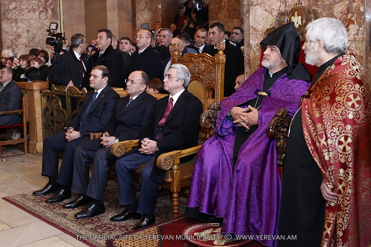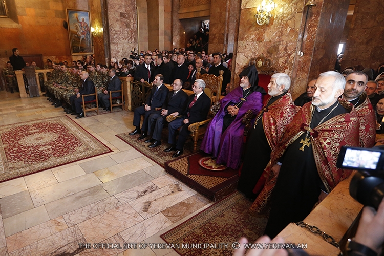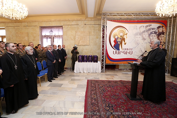 ՀասարակությունՆախագահ Սերժ Սարգսյանը, Երևանի քաղաքապետ Տարոն Մարգարյանը և ՀՀ պաշտպանության նախարար Սեյրան Օհանյանը Հայ Առաքելական Սուրբ եկեղեցու Արարատյան հայրապետական թեմի առաջնորդանիստ Սուրբ Սարգիս եկեղեցում ներկա են գտնվել Սուրբ Սարգիս զորավարի տոնի առթիվ մատուցված Ս. Պատարագին, որը մատուցվել է թեմի առաջնորդական փոխանորդ գերաշնորհ Տ. Նավասարդ արքեպիսկոպոս Կճոյանի հանդիսապետությամբ: Սուրբ Պատարագի շրջանակում կատարվել է պետական սահմանի առաջնագծում ծառայության ընթացքում առավել աչքի ընկած երիտասարդ զինծառայողների օրհնության կարգ: