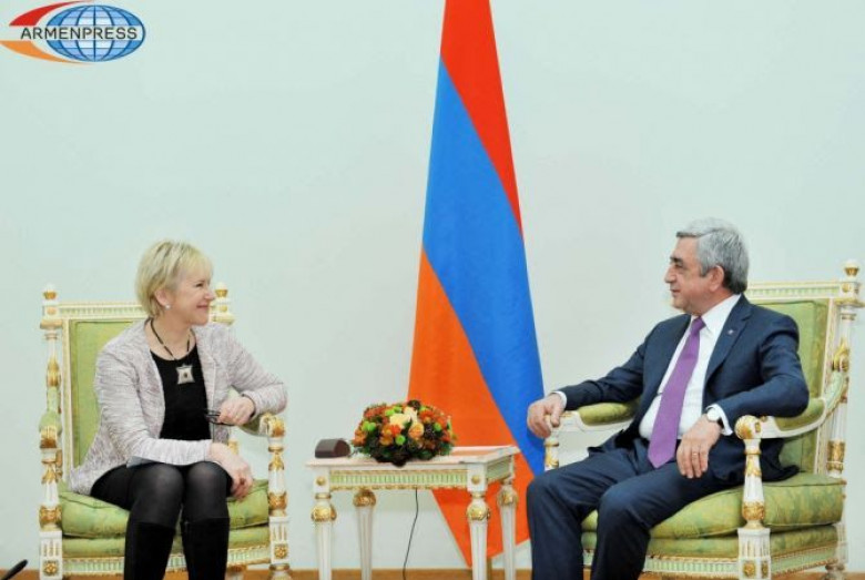 Արտգործնախարար Մարգոտ Վալստրյոմն իր հերթին ընդգծել է, որ լավ հարթակ է ստեղծված երկու բարեկամ երկրների միջև հարաբերություններն ավելի զարգացնելու ու խորացնելու համար և իր երկրի կողմից պատրաստակամություն է հայտնել օժանդակել Հայաստանին՝ բարեփոխումների իրականացման գործում: Հանրապետության Նախագահը նշել է, որ Հայաստանում իրականացվող համապարփակ բարեփոխումներն իշխանությունները դիտարկում են որպես երկրի առաջընթացի և զարգացման կարևոր գրավական և մեծապես գնահատում են ԵՄ գործընկերների աջակցությունն այդ հարցում: