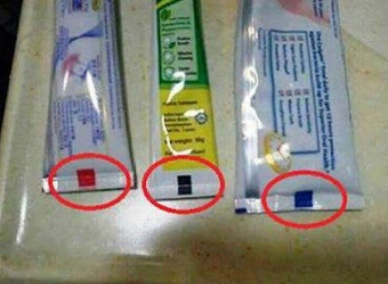 Ատամի մածուկների տուփի վրա տարբեր գույների շերտագծեր են լինում, գրում է Fitfoodhouse.net-ը: Շերտագծերի գույնը կախված է մածուկի բաղադրությունից:
