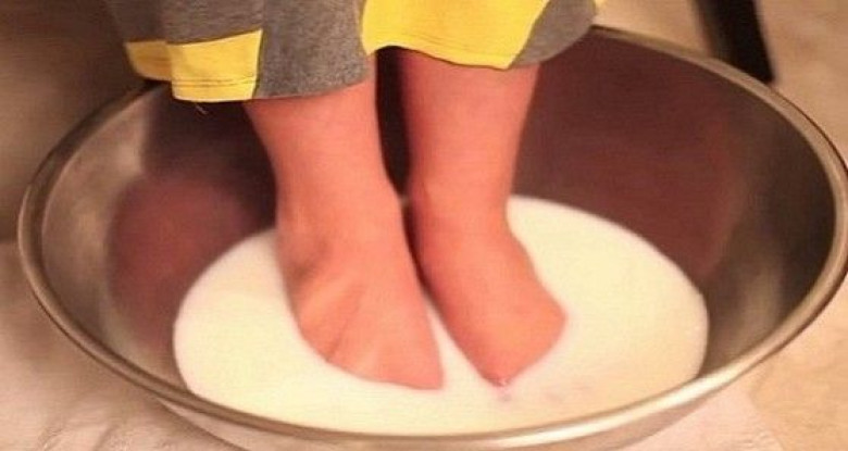 Կաթը տաքացնել և լցնել համապատասխան տարայի մեջ։ Ոտքերը դնել կաթի մեջ 5-6 րոպե, այնուհետ ավելացնել սոդան։ Ոտքերն այս խառնոուրդի մեջ պահել ևս մի քանի րոպե և ոտքերի համար նախատեսված խոզանակով մաքրել ոտքերը։ Լվանալ ջրով, չորացնել և քսել փափկեցնող կրեմ։
