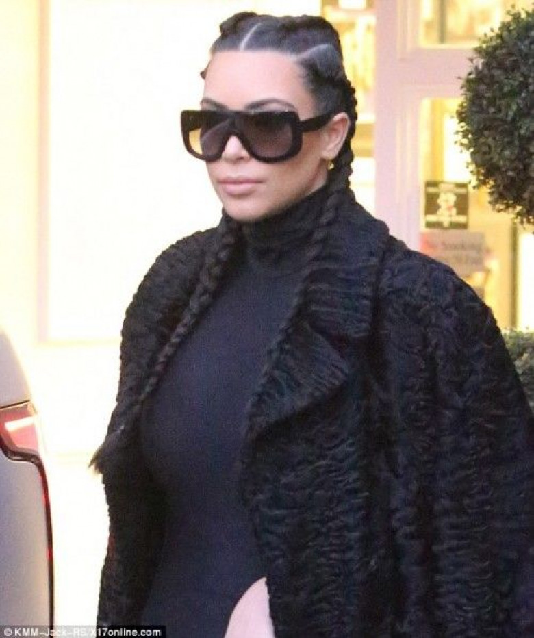 Հեռուստաաստղին պապարացիները «բռնացրել են» սրահից դուրս գալու պահին: Սեւ վերարկուով ու հյուսած ծամերով Քիմը, ինչպես միշտ, փայլուն տեսք ուներ: