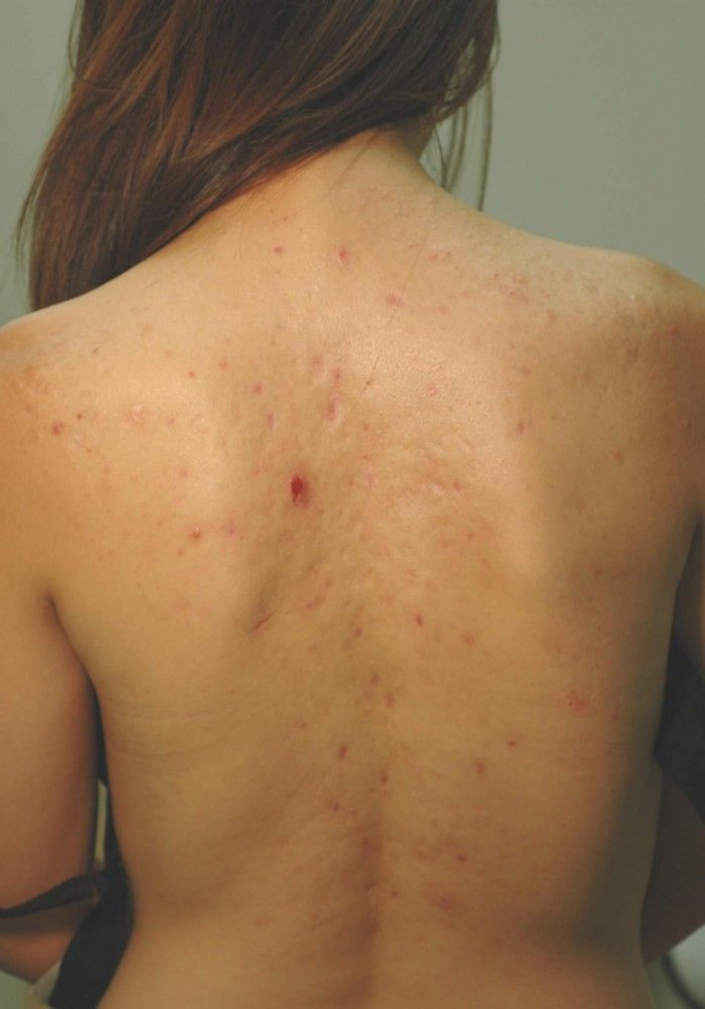 Մաշկի վրա առաջացող թարախային պզուկները, մանր կարմիր ցանավորումը ճարպագեղձերի կողմից արտադրվող արտազատուկի քանակի ավելացման հետևանք են, և հանդիպում են հիմնականում մեջքի վերին հատվածում, կրծքավանդակի առաջային մակերեսին ու ուսերի շրջանում:Այս խնդիրը առավելապես ճարպոտ մաշկ ունեցող և մինչև 27 տարեկան անձանց մոտ է լինում: