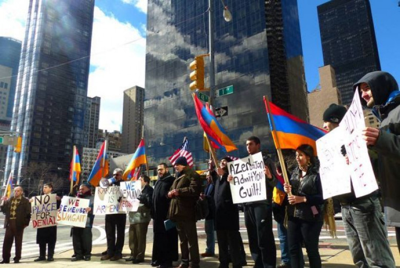 Նյու Յորքի հայ համայնքի ներկայացուցիչները բողոքի ակցիա են անցկացրել ՄԱԿ-ում Ադրբեջանի մշտական ներկայացուցչության շենքի դիմաց