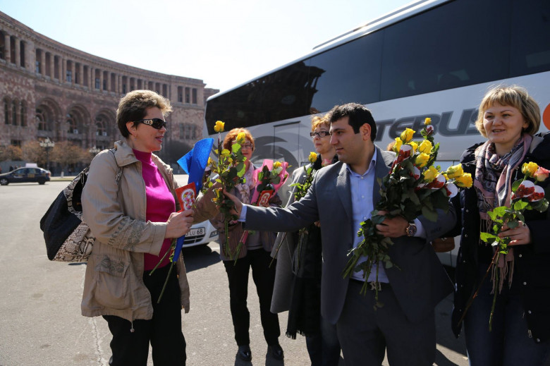Հազարավոր ծաղիկներ բաժանվեց զբոսանքի դուրս եկած կանանց և աղջիկներին`այդ կերպ ուրախություն ու ժպիտ պարգևելով: