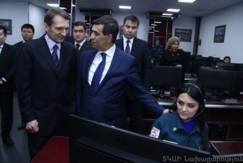 Ինչպես տեղեկացրին ՀՀ արտակարգ իրավիճակների նախարարության հասարակայնության հետ կապերի բաժնից, ՀՀ ԱԻ նախարար Արմեն Երիցյանը հյուրերին ներկայացրել է գերատեսչության ընդհանուր գործունեությունն ու նախարարությւան կազմում ներառված ստորաբաժանումների աշխատանքը: Նախարար Երիցյանի ուղեկցությամբ հյուրերն այցելել են ՀՀ ԱԻՆ Ճգնաժամային կառավարման ազգային կենտրոն: ՃԿԱԿ պետ, գնդապետ Հ. Խանգելդյանը մանրամասն ներկայացրել է կենտրոնի գործառույթները, տեխնիկական հագեցվածությունն ու 911 ծառայության աշխատանքը: ՀԱՊԿ ԽՎ խորհրդի նախագահ Սերգեյ Նարիշկինին հատկապես հետաքրքրել է այն փաստը, որ ՃԿԱԿ-ում աշխատում են հաշմանդամություն ունեցող և սայլակների միջոցով տեղաշարժվող շուրջ 30 աշխատակիցներ: Ս. Նարիշկինը զրուցել է վերջիններիս հետ իրենց առօրյա աշխատանքային գործունեության մասին: