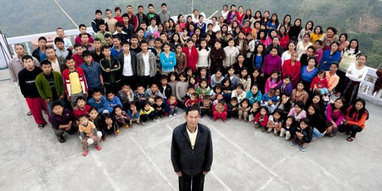 Ցիոն Հանան Միզորամից է: Նա ունի 39 կին, 94 երեխա և 33 թոռ: Բոլորն ապրում են չորս հարկանի շենքում, որն ունի 100 սենյակ: Պարոն Հանան ինչ-որ աղանդի առաջնորդ է, որտեղ տղամարդկանց թույլատրվում է այնքան կին ունենալ, որքան ցանկանան:
