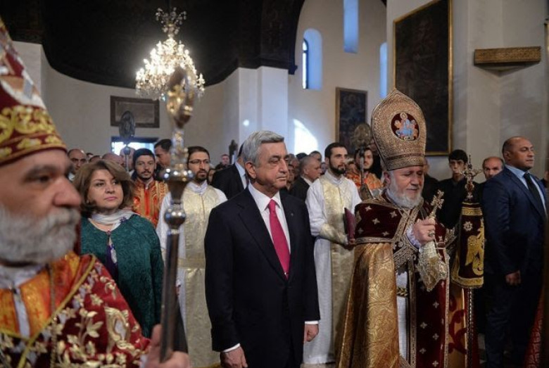 Նախագահ Սերժ Սարգսյանը Էջմիածնում ներկա է գտնվել Սուրբ Հարության պատարագին