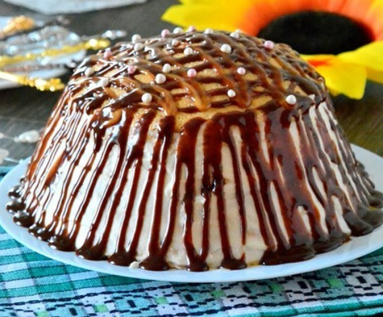 Շերտերի վրա քսել կարամելի կրեմը, կողքերը՝ վանիլային։