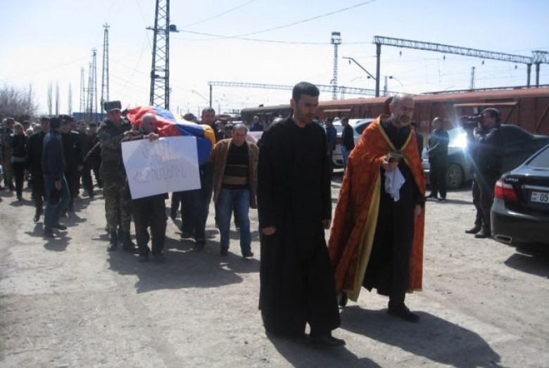 ՀասարակությունԳյումրին վերջին հրաժեշտը տվեց ապրիլի 1-ին Արցախում զոհված ժամկետային զինծառայող 20-ամյա Վլադիմիր Մելքոնյանին: ԼՂՀ նախագահ Բակո Սահակյանի հրամանագրով՝ Լեռնային Ղարաբաղի Հանրապետության պետական սահմանը պաշտպանելիս ցուցաբերած արիության համար Վլադիմիր Մելքոնյանը հետմահու պարգեւատրվել է «Մարտական ծա ռայություն» մեդալով: