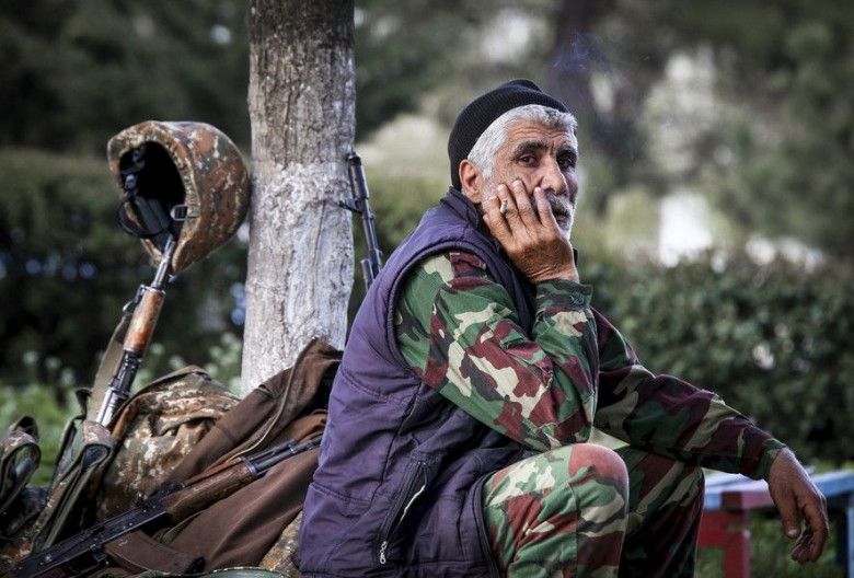 Լուսանկարը, որը վերնագրված է «Հայ կամավորը պատրաստվում է պաշտպանության», արվել է Agence France-Presse գործակալության ֆոտոլրագրողի կողմից, ով այցելել է Ասկերան: