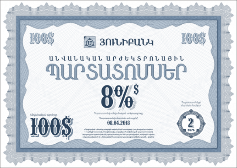 Յունիբանկը սկսել է 8% եկամտաբերությամբ պարտատոմսերի թողարկումը