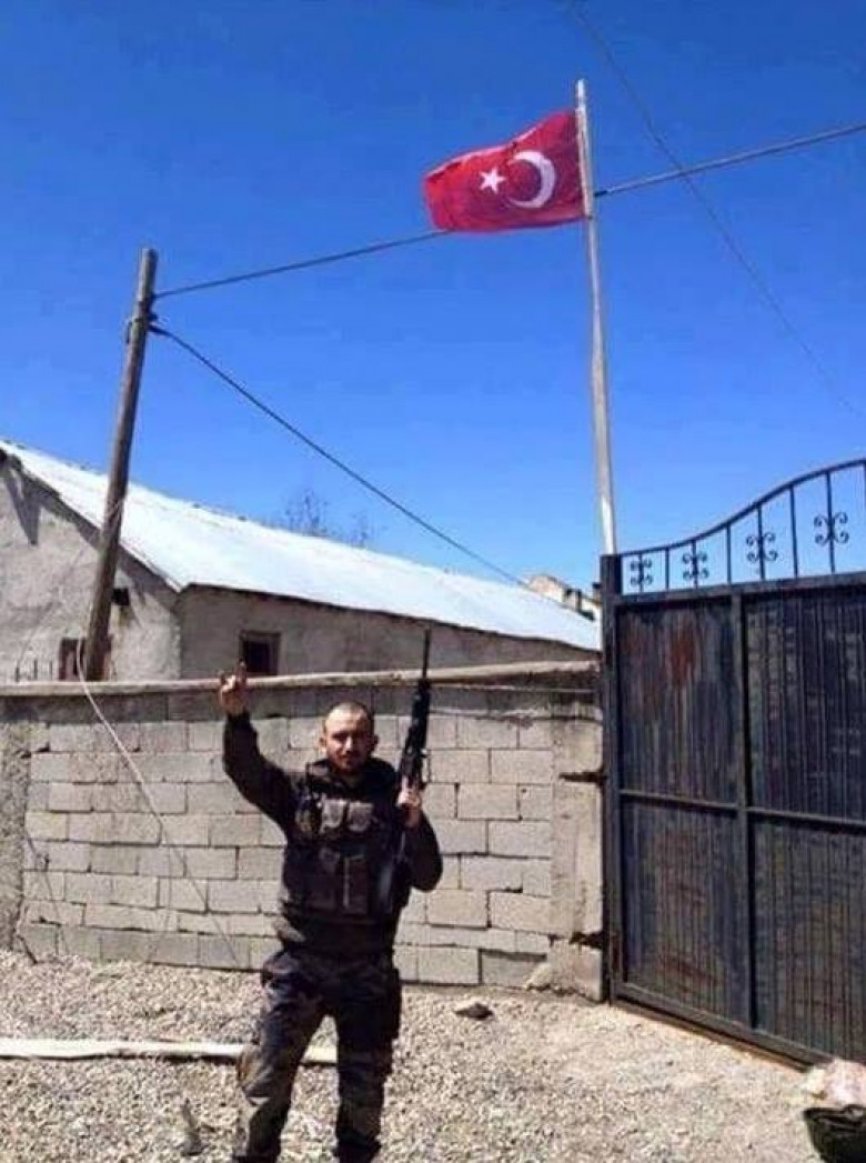 ԲլոգՍա թուրքական բանակի հատուկջոկատային, «գորշ գայլեր» խմբավորման անդամ, կապիտան Շինան Կունդուրաչին է, այս ֆոտոն արվել է հավանաբար մարտի 31-ին, Ադրբեջանի սահմանամերձ գյուղերից մեկում, այս լամուկի ժամանակավոր կեցավայրում: Մեր տղերքը սրան սատկացրել են քառօրյա պատերազմի ժամանակ, իսկ Թուրքիայի գլխավոր շտաբը ապրիլի 7-ից սրա ընտանիքին հայտնել էր, որ Շինան Իրաքում է, իսկ ահա այսօր արդեն հայտնի դարձավ, որ իբրև սա զոհվել է Թուրքիայի հարավ-արևելյան նահանգներից մեկում, զինված բախումների ժամանակ: Նշված չէ, թե կոնկրետ ո՞ր նահանգում, ո՞ր քաղաքում կամ կոնկրետ ո՞ր օրը, պարզապես այսօր տեղյակ են պահել հարազատներին, իսկ արդեն երեկոյան փակ դագաղով հուղարկավորել են: