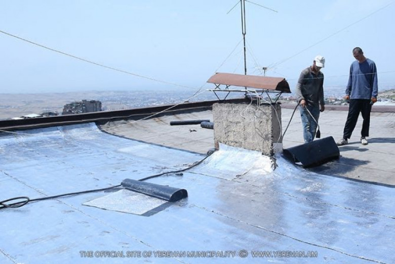 Երևանում շարունակվում են բազմաբնակարան շենքերի հարթ և թեք տանիքների նորոգման աշխատանքները