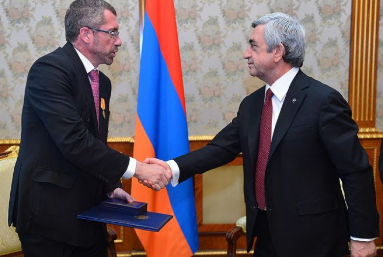 Սերժ Սարգսյանը Ֆրանկ Էնգելին է հանձնել Մխիթար Գոշի մեդալը