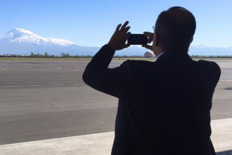 ՀասարակությունՕրերս Երեւանում գտնվող Ռուսաստանի Դաշնության արտաքին գործերի նախարար Սերգեյ Լավրովը օդանավակայանում լուսանկարել է Արարատ լեռը: ՌԴ ԱԳՆ պաշտոնական ներկայացացիչ Մարիա Զախարովան Facebook-ի իր էջում տեղադրել է Լավրովի` Արարատը լուսանկարելու պահն արտացոլող պատկերը` գրառելով. «Արարատն այսօր զմայլեց իր գեղեցկությամբ: Սերգել Լավրովը եւս չդիմացավ եւ լուսանկարեց լեռը»: Այդ իրողությունը նոր հիսթերիա է առաջացրել Ադրբեջանում եւ Թուրքիայո ւմ: