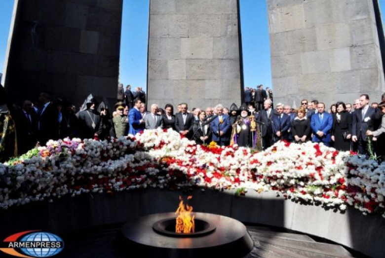 ՀասարակությունՀայաստանի Հանրապետության բարձրագույն ղեկավարությունը Ծիծեռնակաբերդի հուշահամալիրում հարգանքի տուրք մատուցեց 1915թ. Օսմանյան Թուրքիայի իրականացրած ոճիրի` Հայոց ցեղասպանության անմեղ զոհերի հիշատակին:Անմար կրակի մոտ, Ն.Ս.Օ.Տ.Տ. Գարեգին Բ Ամենայն Հայոց կաթողիկոսի հանդիսապետությամբ հոգեհանգստյան պաշտոն կատարեց հոգեւոր դասը, պաշտոնատար անձիք գլուխ խոնարհեցին եւ մեկ րոպե լռությամբ հարգեցին սպանված 1,5 միլիոն հայերի հիշատակը: