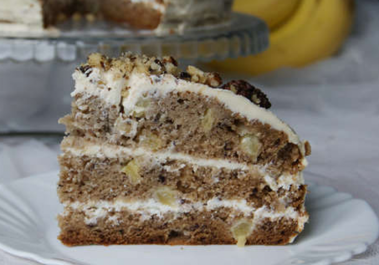Բանանը պատառաքաղով ճզմել, պյուրե անել, ավելացնել արքայախնձորն ու ձուն։ Լավ միախառնել ու ավելացնել բուսայուղը։