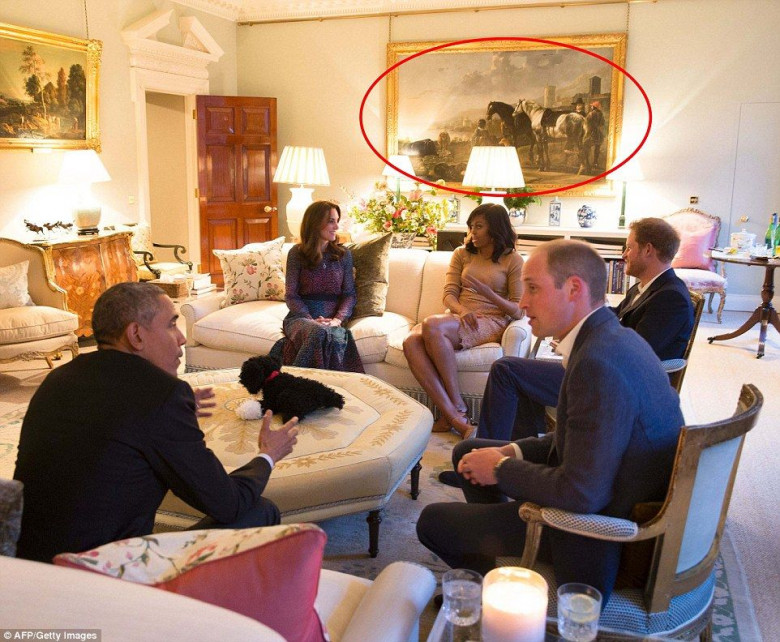 Մեծ Բրիտանիայի արքայազն Ուիլյամի ու նրա կնոջ` Քեյթ Միդլթոնի նստավայրի` Քենսինգթոնյան պալատի աշխատողները Բարաք և Միշել Օբամաների այցից առաջ պատից կախված կտավներից մեկի մոտից հեռացրել են հուշատախտակը, որի վրա գրված է եղել «նեգր» բառը: