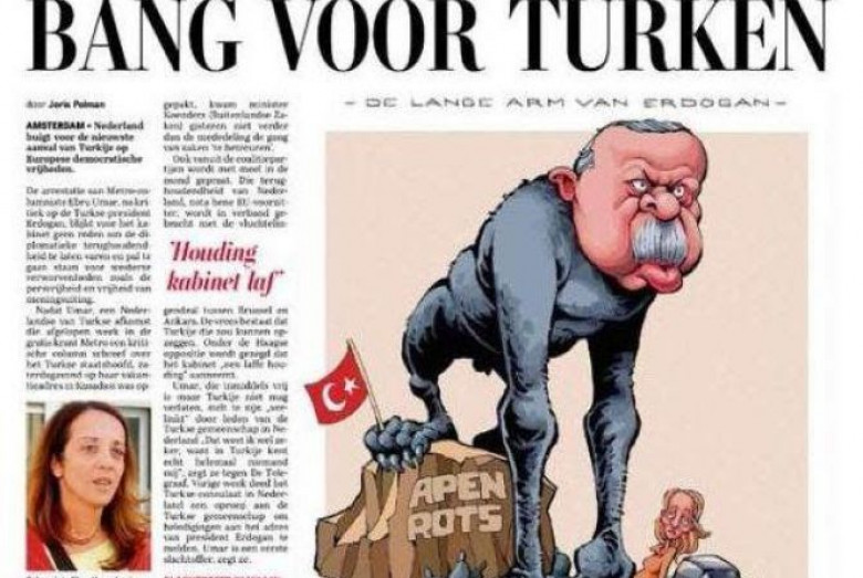 Ինչպես հաղորդում է «Արմենպրես»-ը, թերթն Էրդողանին պատկերող այդ ծաղրանկարը հրապարակել է այն բանից հետո, երբ Թուրքիայի նախագահի հասցեին գովասանքներ չշռայլելու համար Անկարայում ձերբակալվել է ծագումով հոլանդացի թուրք լրագրող Էբրու Ումարը: