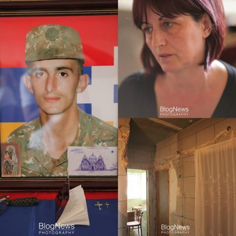 «Մեր տան մի պատը սվաղեց, ասաց՝ մամա ջան, գնամ բանակ, գամ, կվերանորոգեմ տունը, կգամ, մեքենա կգնեմ, որ եղբայրս ոտքով չգնա դասի, աշխատանքի։ Ճիշտն ասած, ես ոչինչ չունեի, սառնարան էր ուզում գնել, սեղան, աթոռ։ Բարեգործերը սառնարան բերեցին, սեղան աթոռ։ Ինքն իր արյան գնով ուզեց հատուցել եղբորը...»,- ասաց մայրը, ապա հավելեց, որ հյուրասենյակն էլ, որտեղ նստած էինք, դատարկ էր, կահույք չկար։ «Այս կահույքը հարևանն է բերել, քանի որ այս օրերին մարդիկ են գալիս, նստեն։ Պատուհան, լույս, այստեղ ոչինչ չի եղել։ Երկու տարի առանց լույսի ենք ապրել, երեխաներս մոմի լույսի տակ են մեծացել, դաս արել։ Տունն էլ մերը չէ։ Ամուսնուս մահվանից հետո դուրսն էինք մնացել, թաղապետը մեզ թույլ տվեց այստեղ ապրել, չգիտեմ էլ՝ սա ձեռքիցս կվերցնե՞ն, թե՝ ոչ»,- ասաց զինվորի մայրը։
