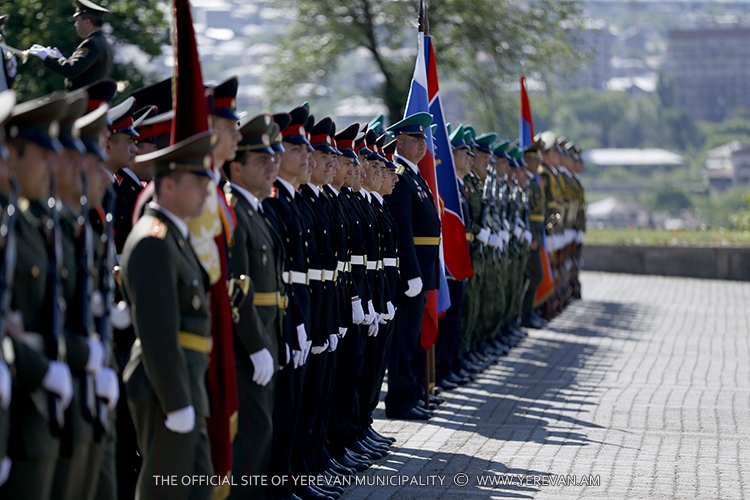 Սերժ Սարգսյանը միջոցառման մասնակիցների հետ դիտել է ՀՀ զինված ուժերի, ՌԴ սահմանպահ ծառայության, պատվո պահակախմբի ստորաբաժանումների, Վ.Սարգսյանի անվան ռազմական ինստիտուտի կուրսանտների և Մ. Մելքոնյանի անվան ռազմամարզական վարժարանի սաների հանդիսավոր քայլերթը: